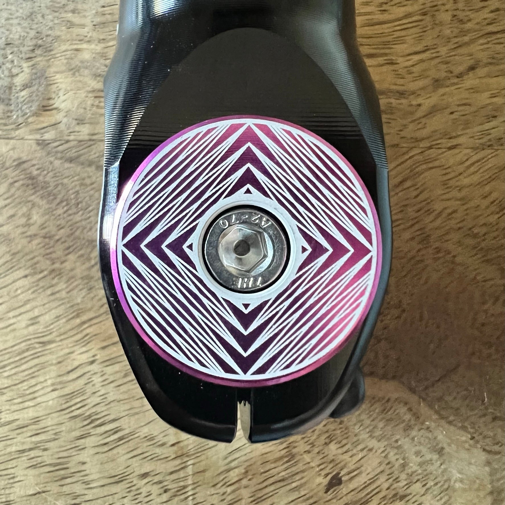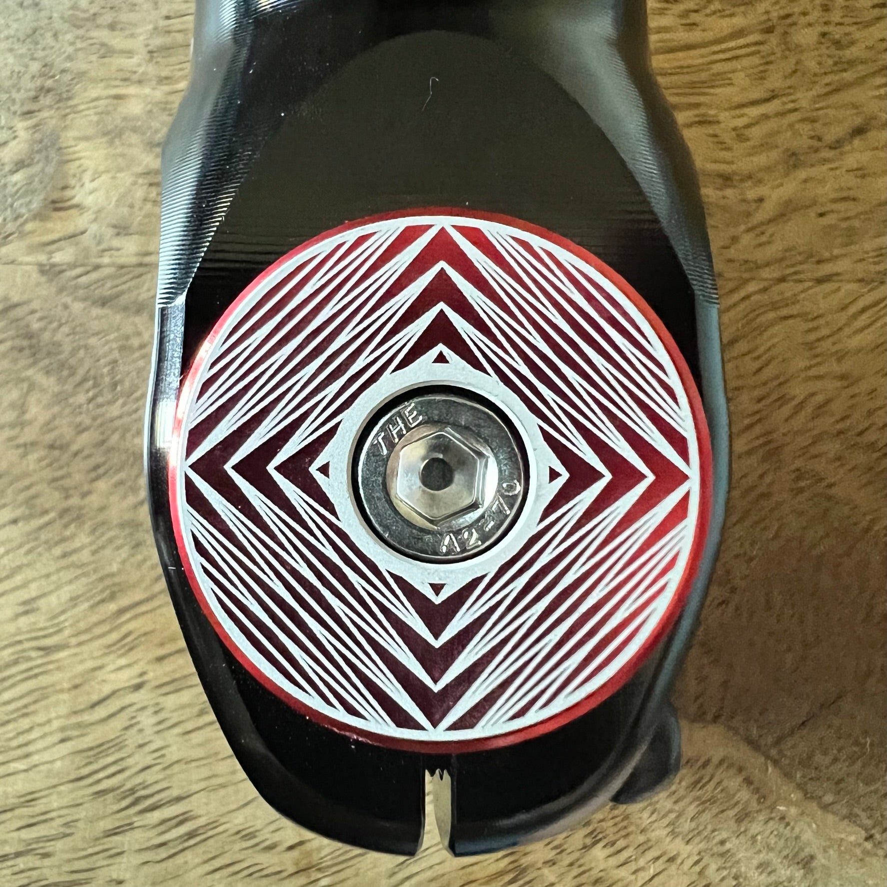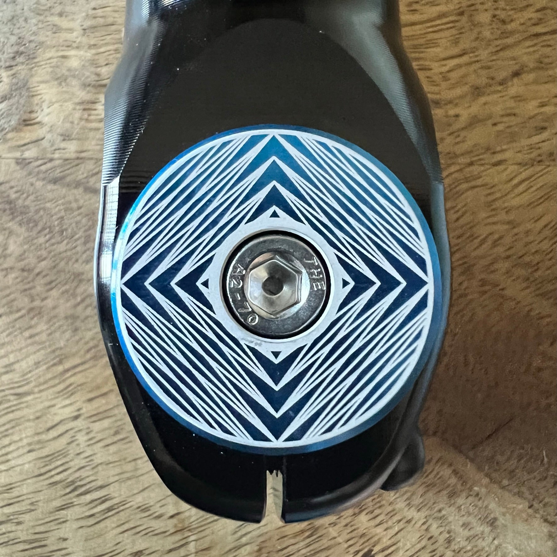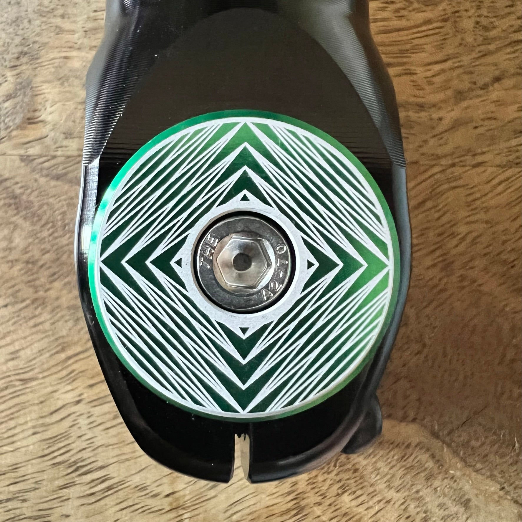 Whoa!! What’s going on? Are you spinning or is the screen moving? Wild like your style. This top cap will stand out on any bike and keep the attention.