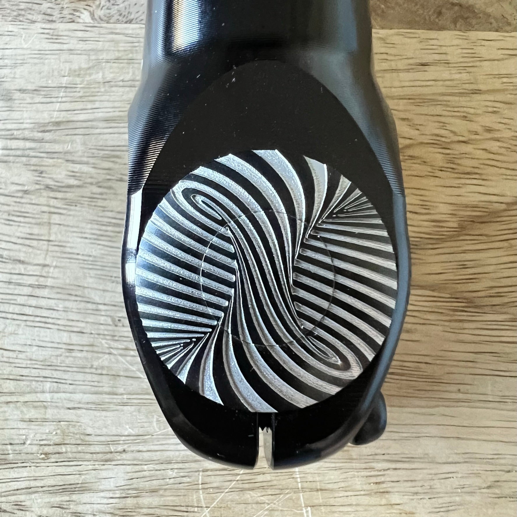 Easy Installation: Installing the two-piece stem top cap is a breeze. Simply install the lower half of the top cap with the supplied bolt. Then, attach the engraved center cap to cover the bolt, complete the art, and finalize the assembly.