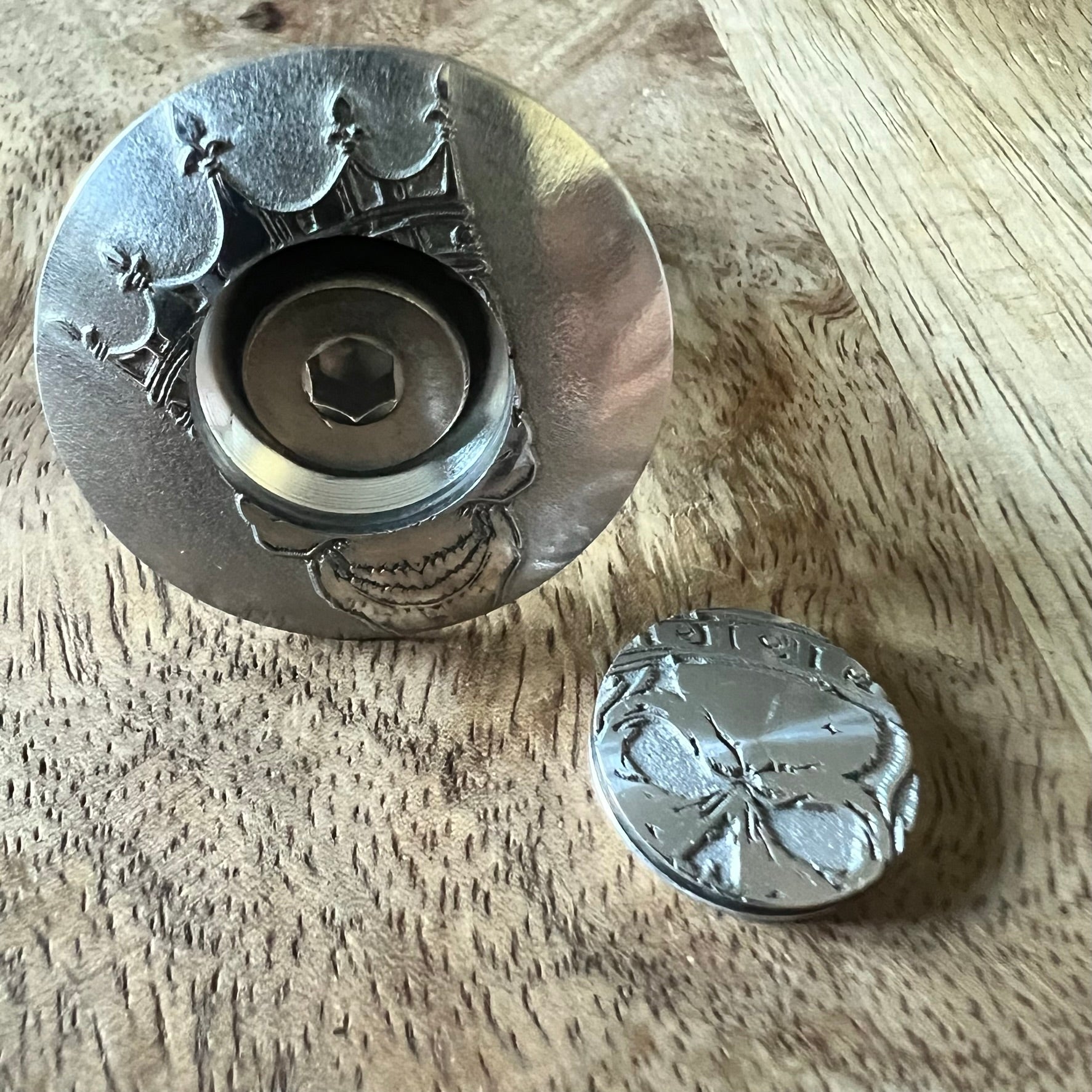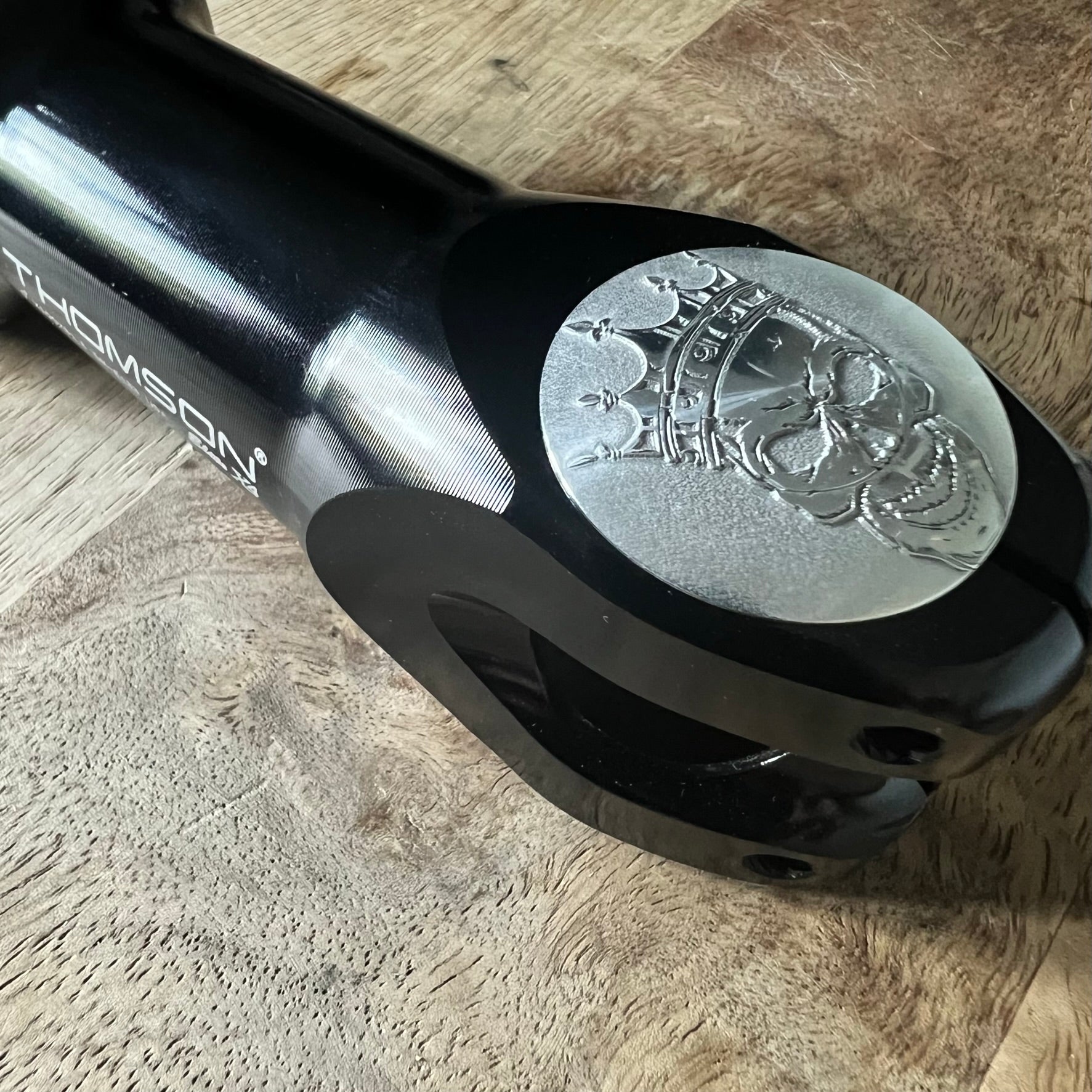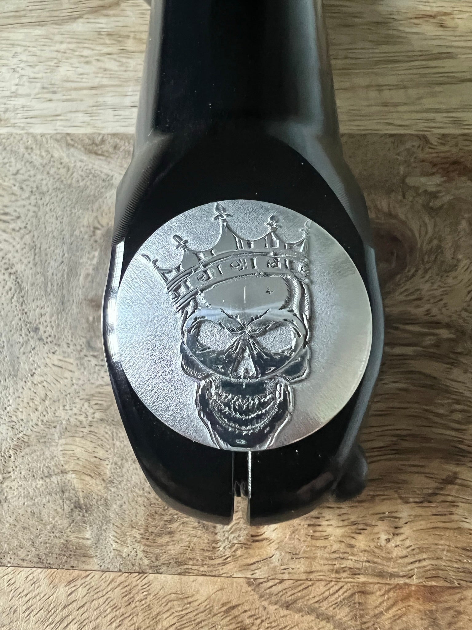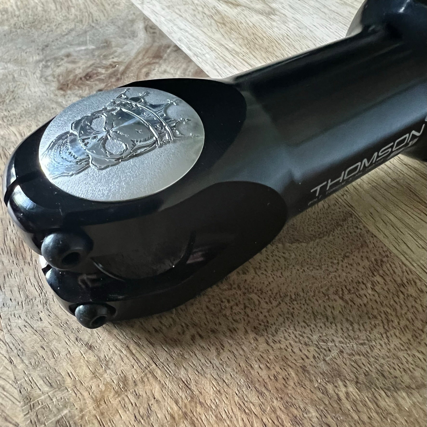 Easy Installation: Installing the two-piece stem top cap is a breeze. Simply install the lower half of the top cap with the supplied bolt. Then, attach the engraved center cap to cover the bolt, complete the art, and finalize the assembly.