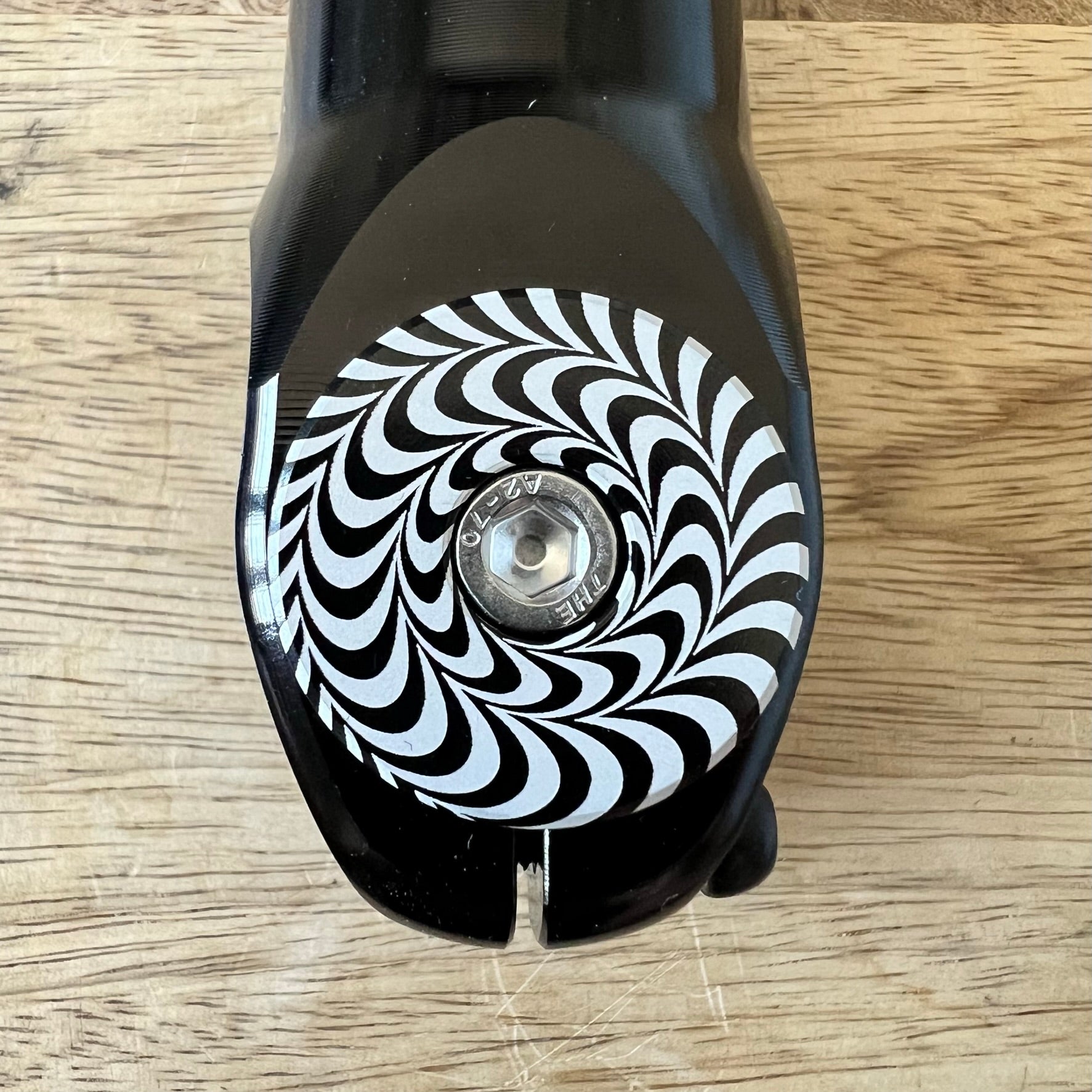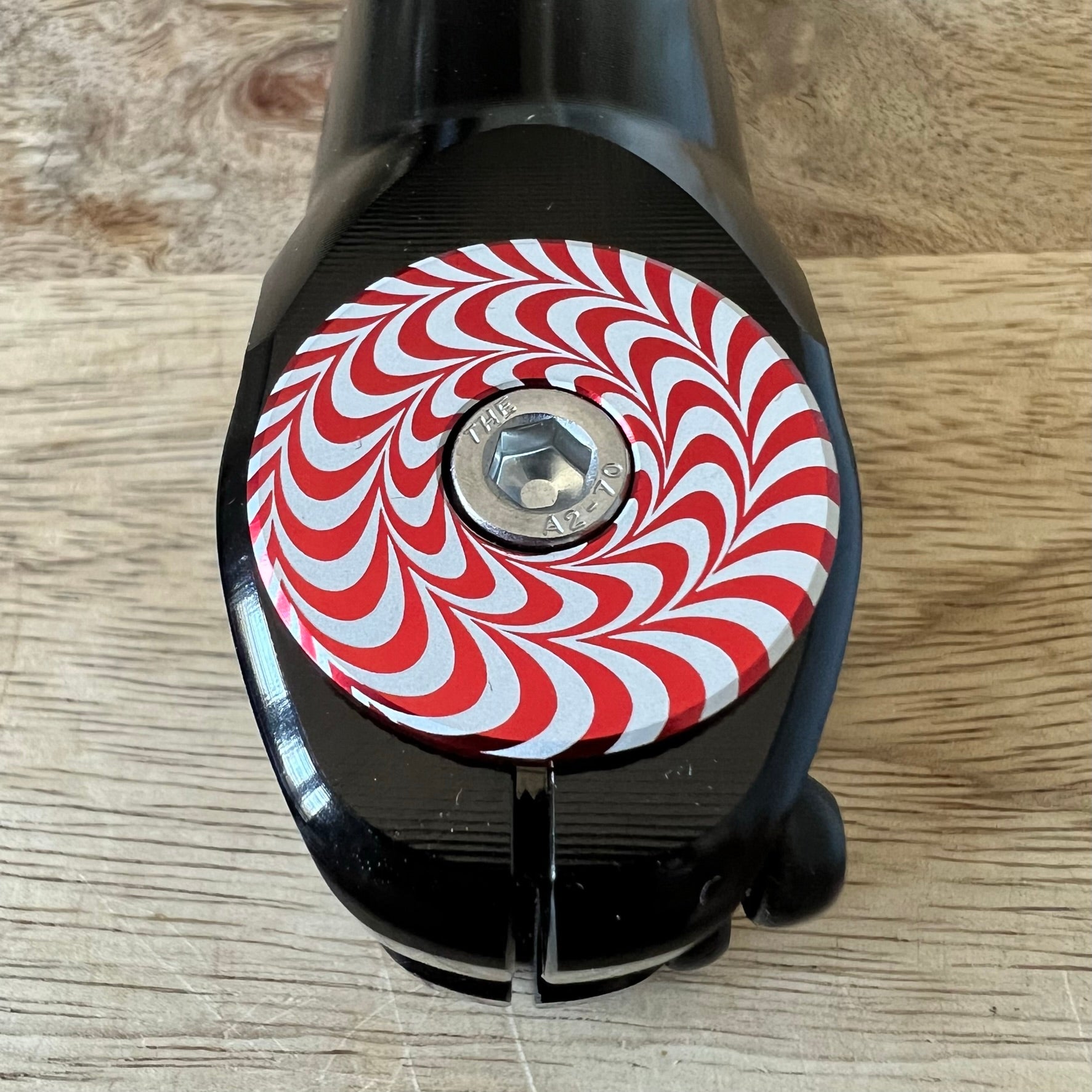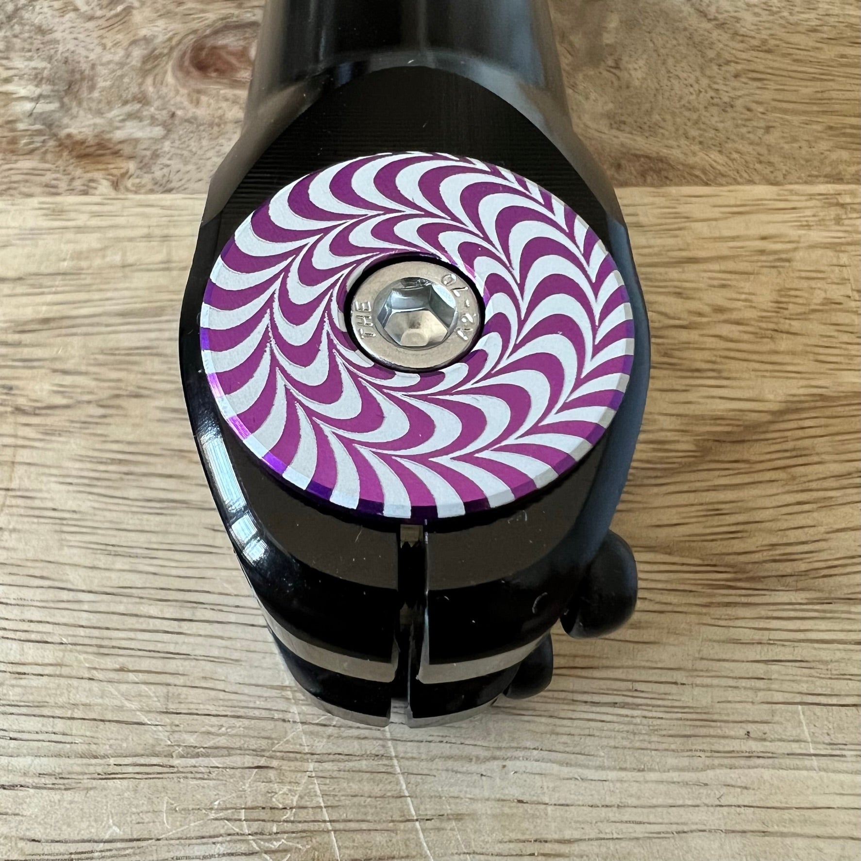 - The aluminum stem cap features a captivating Spitfire Style pattern that creates a mesmerizing visual effect. It's guaranteed to catch the attention of fellow cyclists and passersby.
