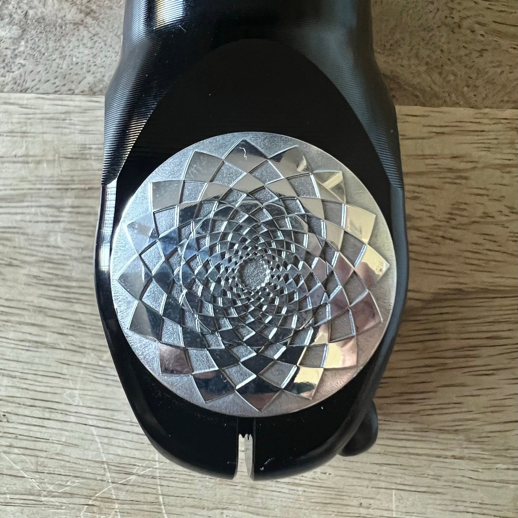 Upgrade your bike's stem with our Aluminum Hidden Bolt Bicycle Two-Piece Stem Top Cap, featuring deep laser engraving designs. Elevate your riding experience and showcase your personal style with this premium accessory. Get ready to turn heads on your next cycling adventure!
