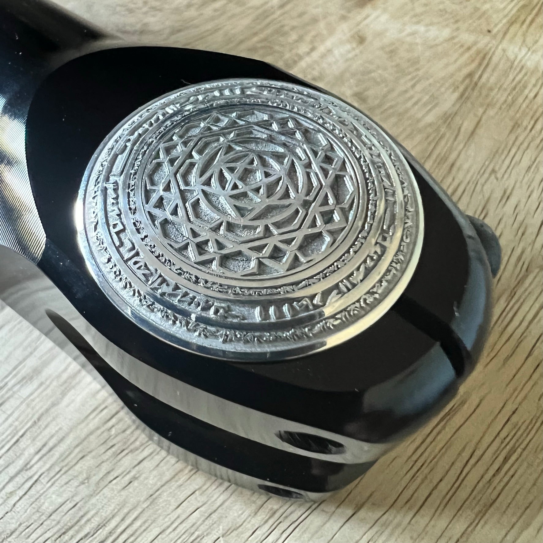 Dr. Strange Magic Shield Mandala Hidden Bolt Top Cap - This cap is destined to set off your ride every time. Deep Laser reverse engraving creates a 3D image that pops right off the top cap. The cap is then sanded and polished so that the background is distressed and the art is polished to a mirror shine. Its an absolute show piece.